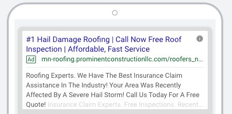 Google Ads Campaigns that Called out Hail Damaged Homeowners